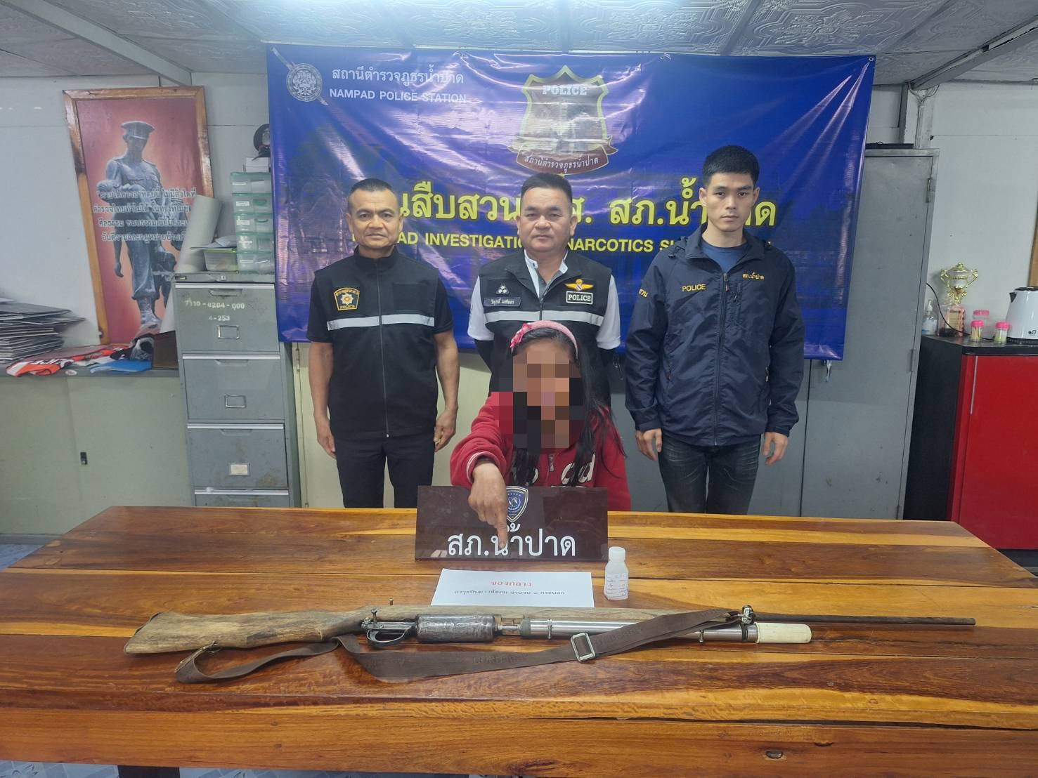 ชุดสืบสวน ชุด ปส.สภ.น้ำปาดได้ร่วมกันจับกุมตัว🎯ผู้ต้องหา จำนวน 1 ราย -น.ส.แสงพร้อมด้วยของกลาง➡️1อาวุธ
