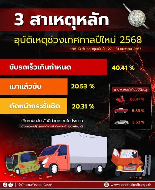 พบว่า 3 สาเหตุหลักของอุบัติเหตุ คือ