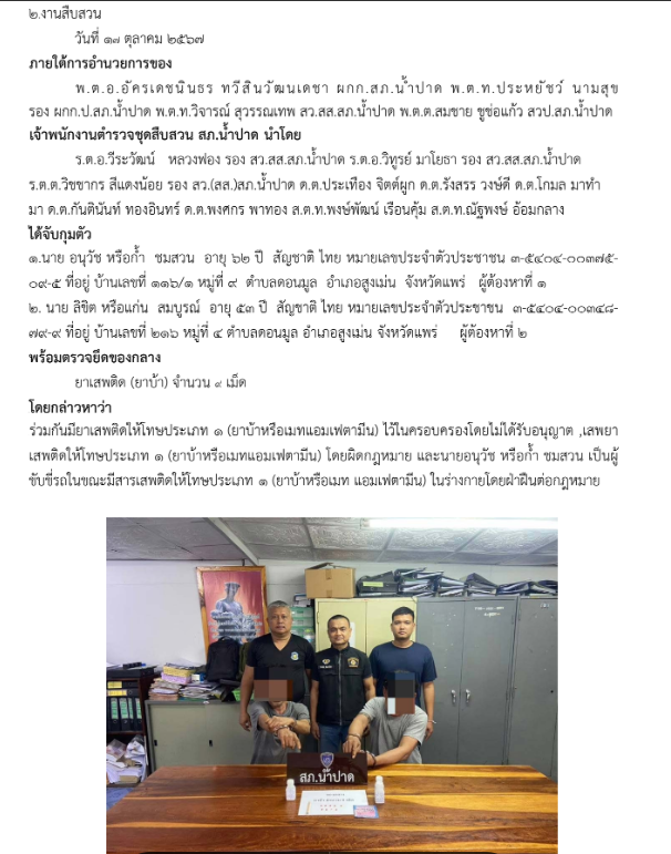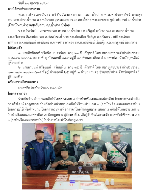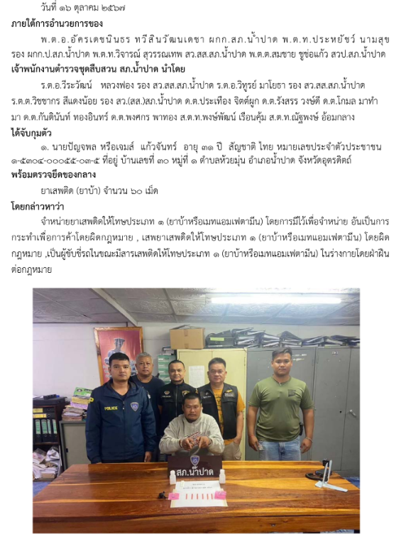 วันที่ 23 ตุลาคม 2567เวลา 08.00 น.พ.ต.อ.อัครเดชนินธร ทวีสินวัฒนเดชาผกก.สภ.น้ำปาด นำข้าราชการตำรวจในส