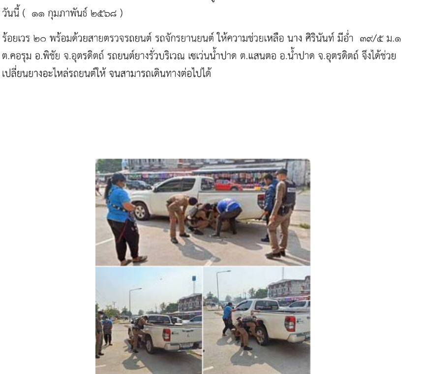 20/30/สายตรวจรถยนต์/รถจักรยานยนต์รายงานเหตุว.40 รถยนต์ตกข้างทาง1.วันที่ 15 พ.ย. 68เวลาประมาณ 14.20 น
