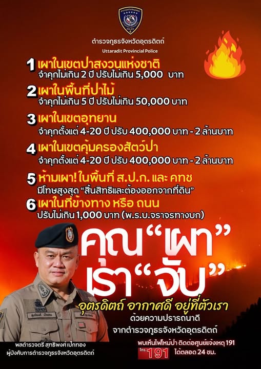 รู้หรือไม่? การเผาหญ้า เผาขยะ เผาป่า มีโทษทางกฎหมาย คุณ “ เผา ” เรา “ จับ ” อุตรดิตถ์ อากาศดี อยู่ที